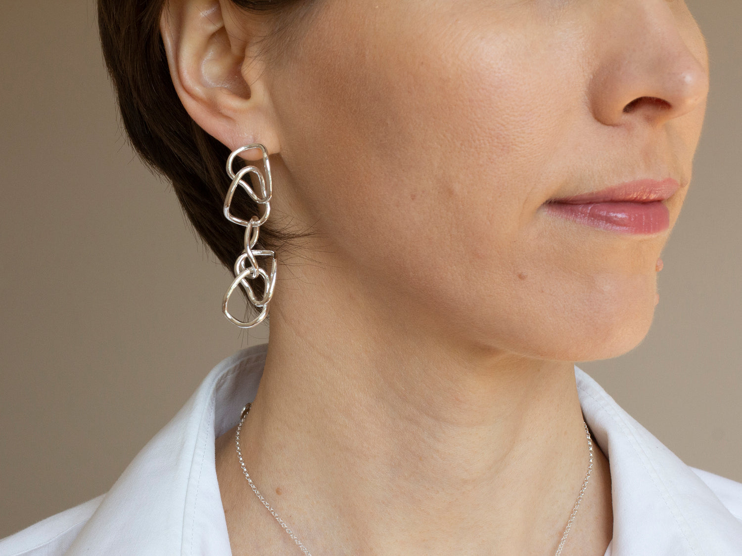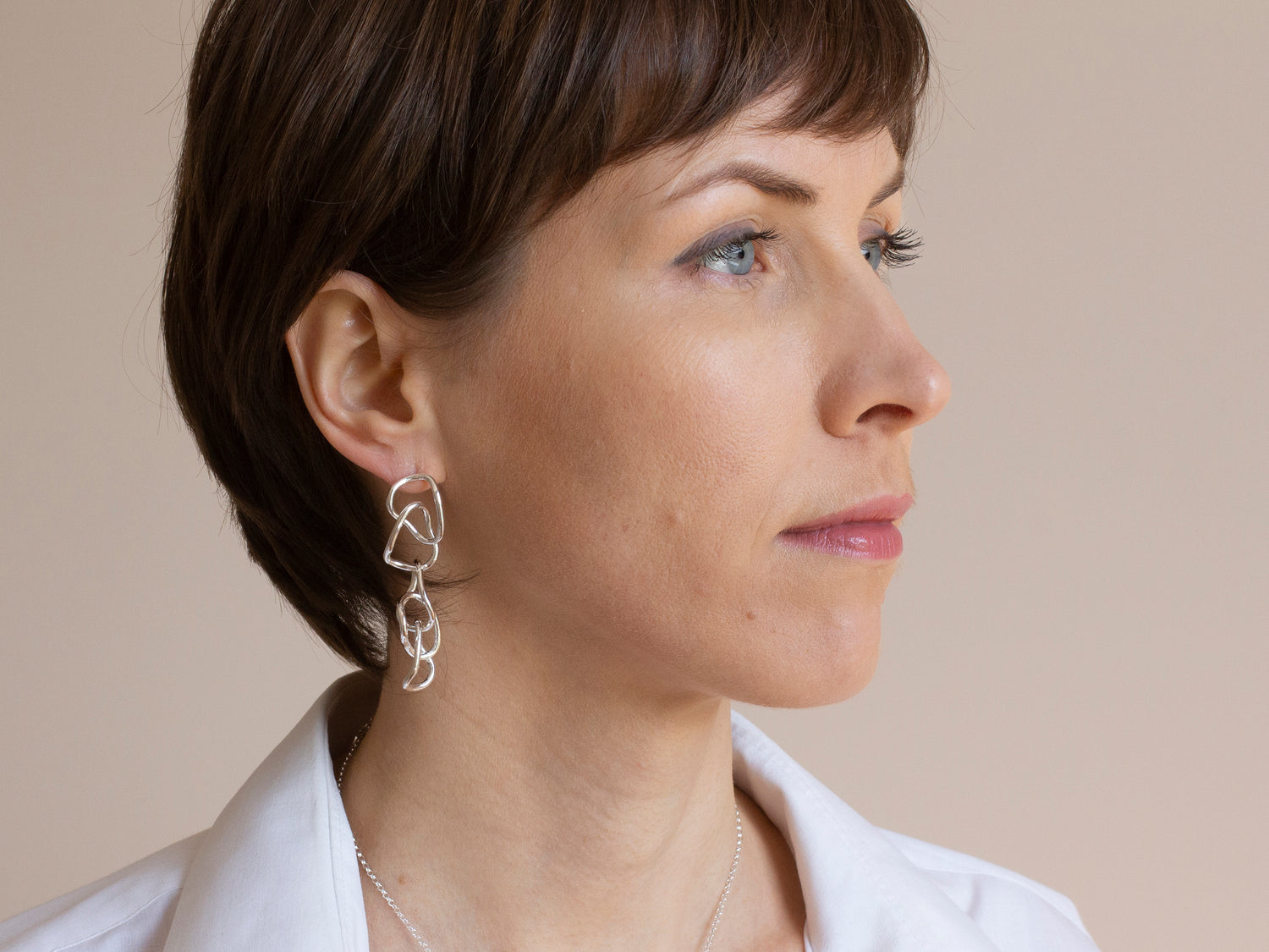 Organic shaped interlinked earrings from collection Nymph symbolises the connection with nature.