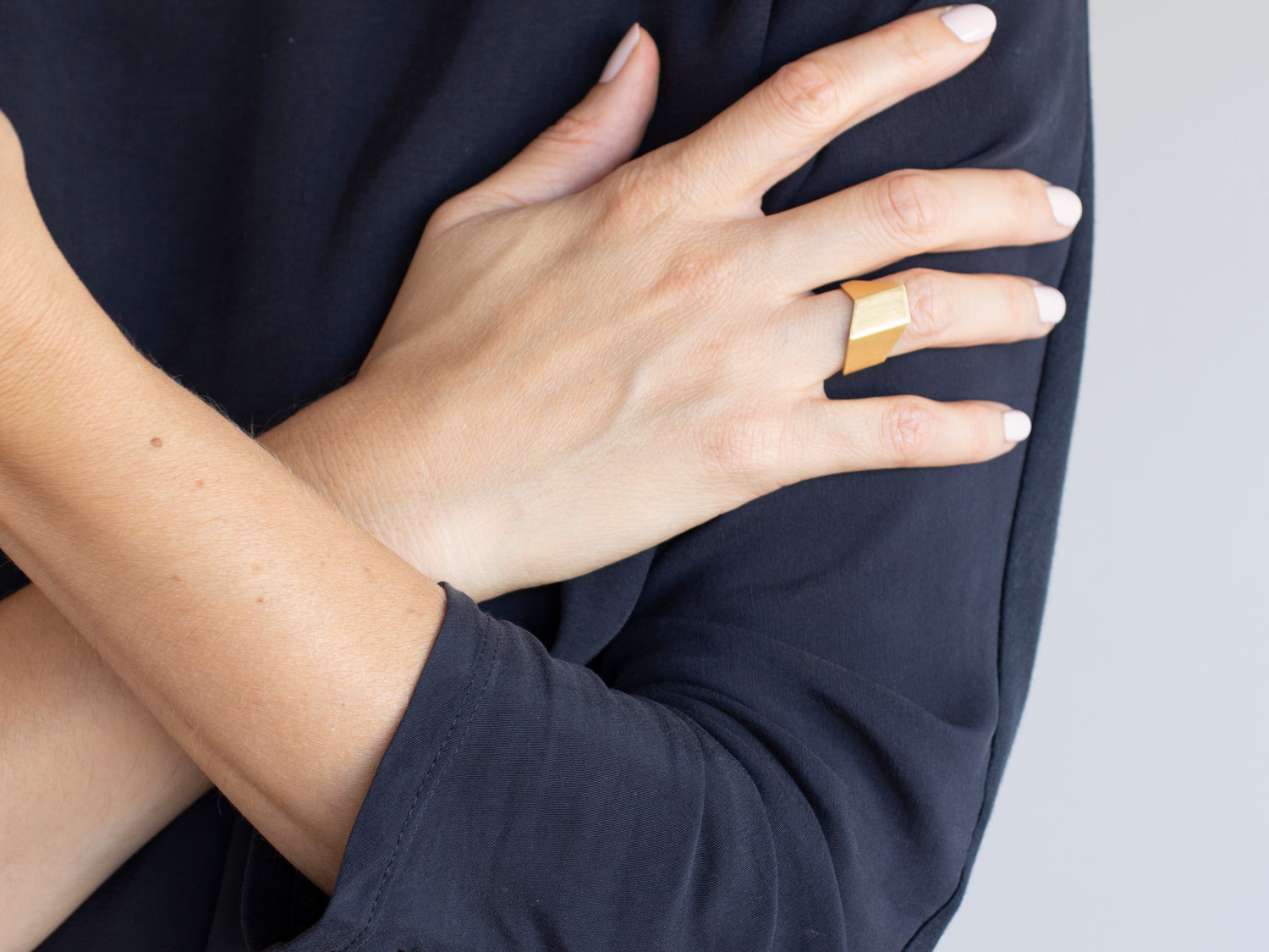 Geometric faceted ring from the collection Form with dynamic design. Clean asymmetric lines and minimalist design makes this ring an attraction element. Comfortable ring that will add geometric edge to your look.
