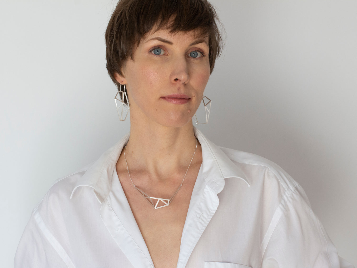 This is geometric necklace with unique geometrical design with industrial aesthetic. It is three dimensional sculptural necklace that attracts attention by its unusual shape.