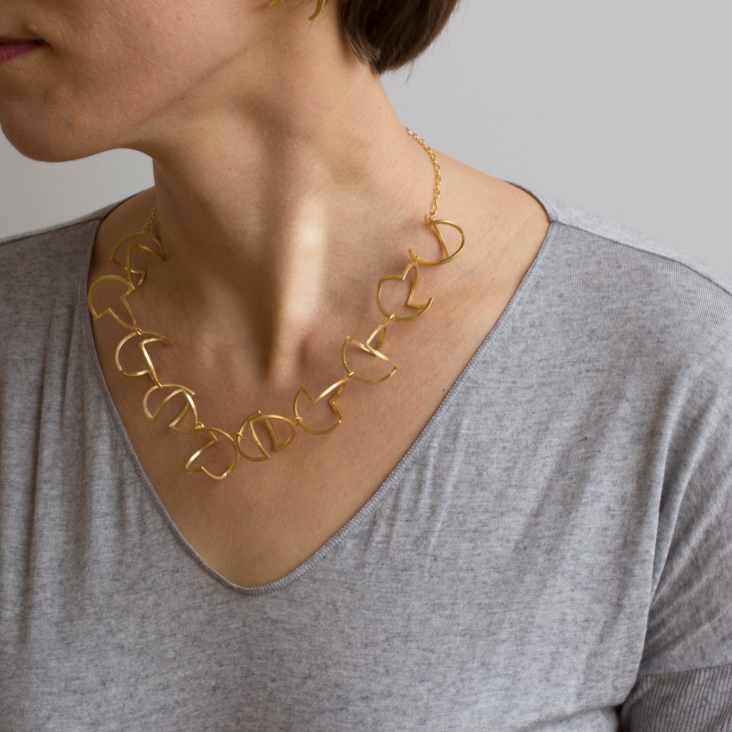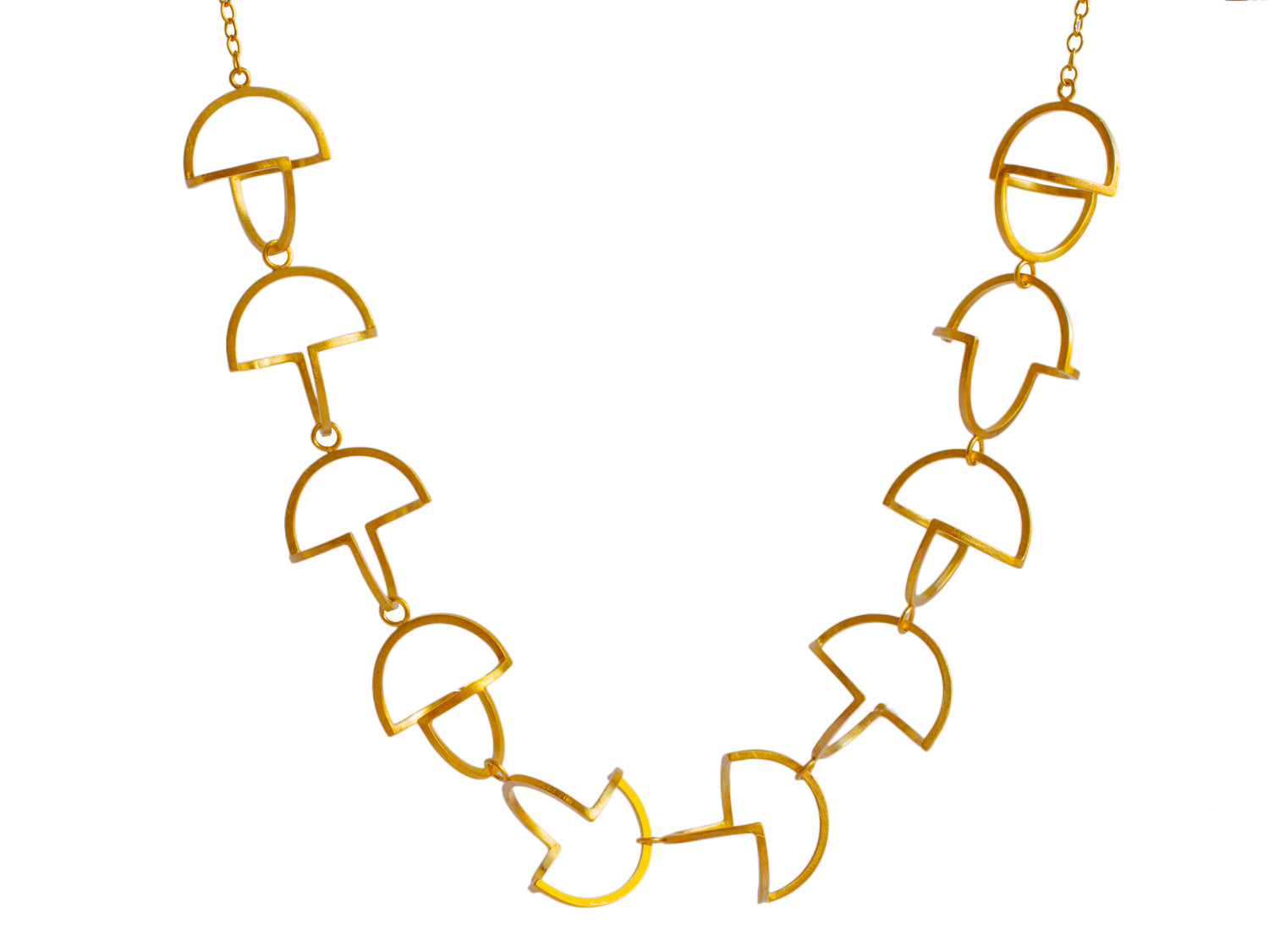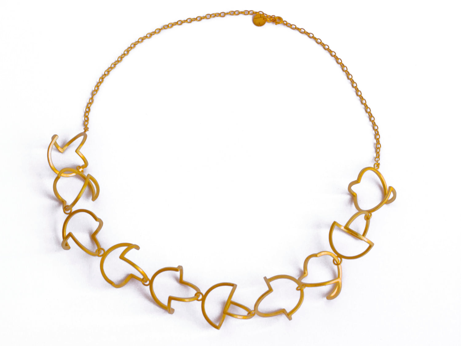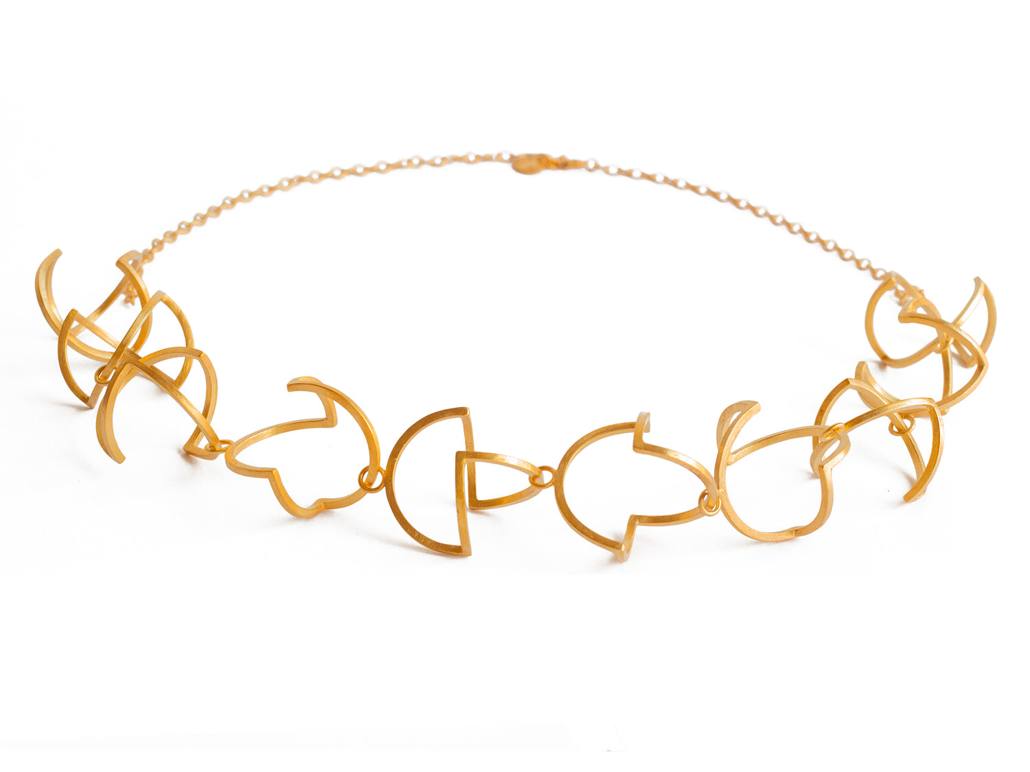 Ten sculptural links interpretating the shape of sphere are creating this eye catching necklace.