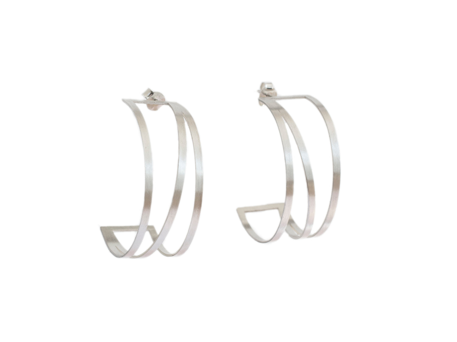 Unique wide silver hoop earrings featuring geometric design. Lightweight statement earrings with minimalist design.