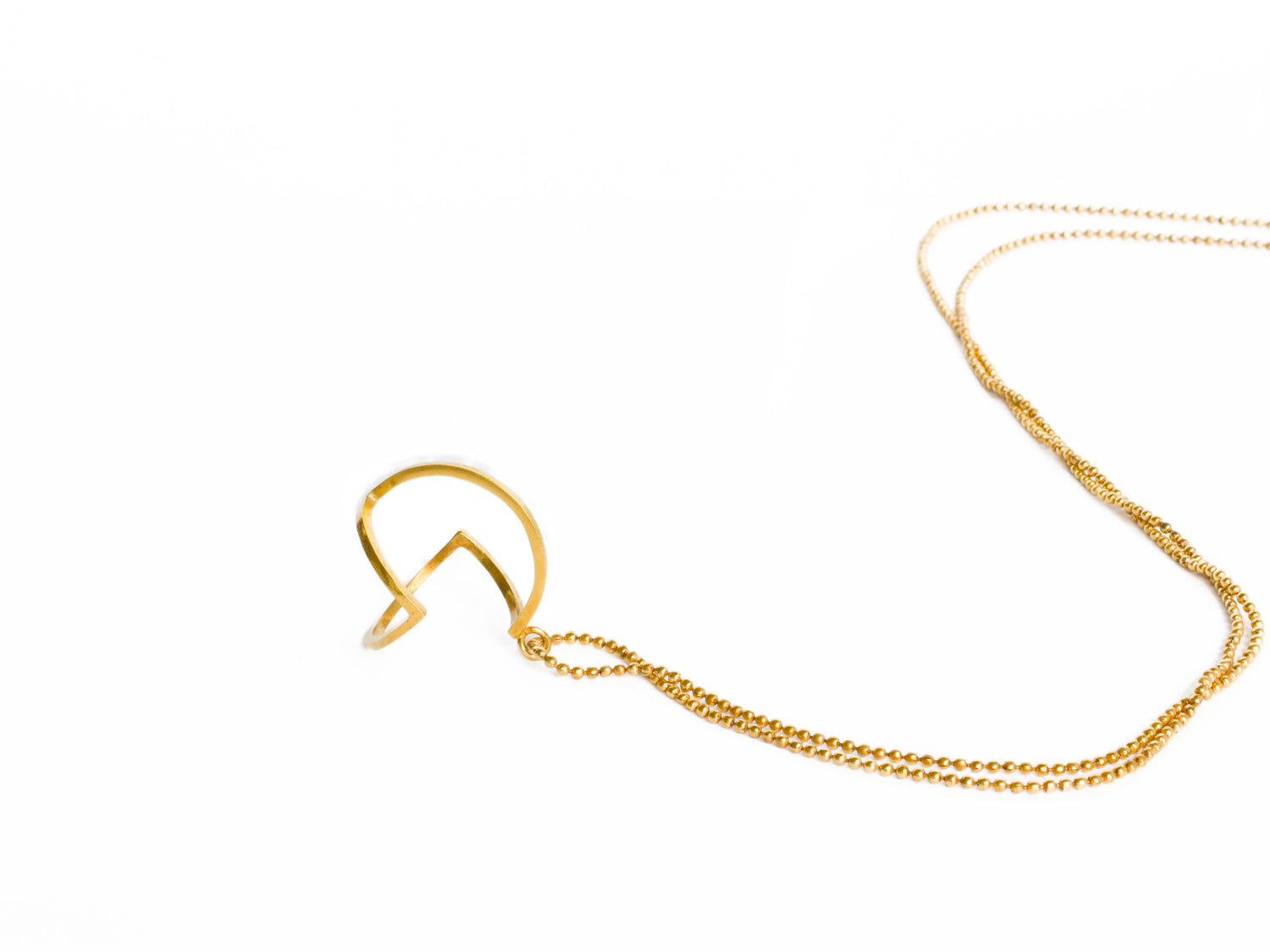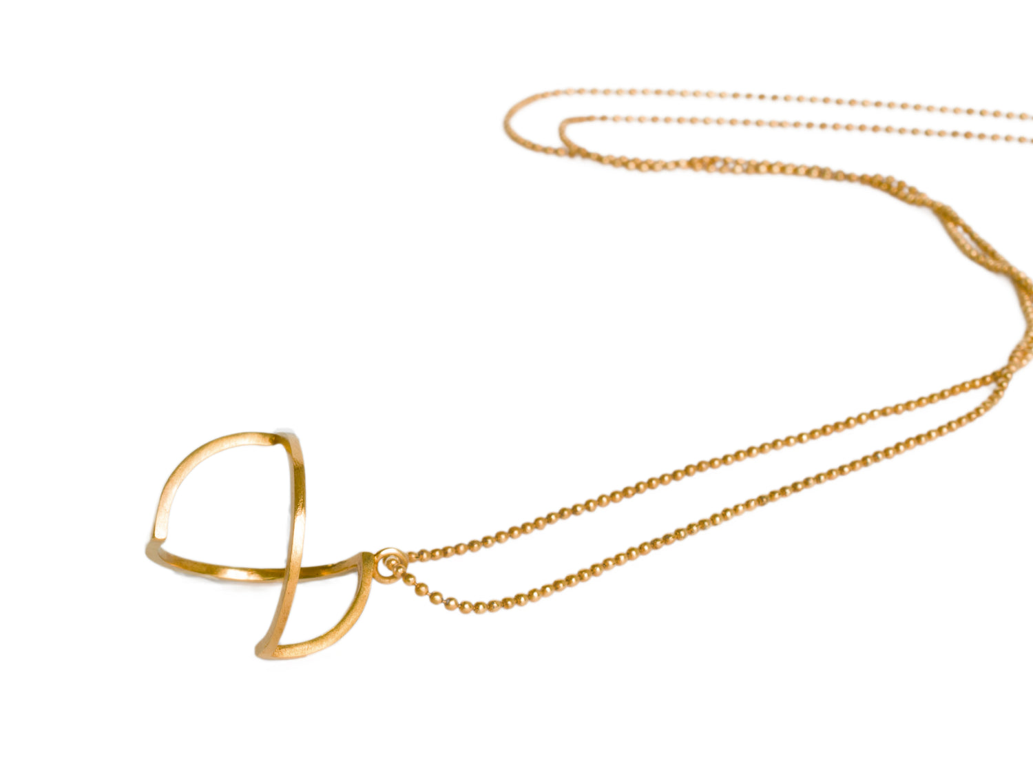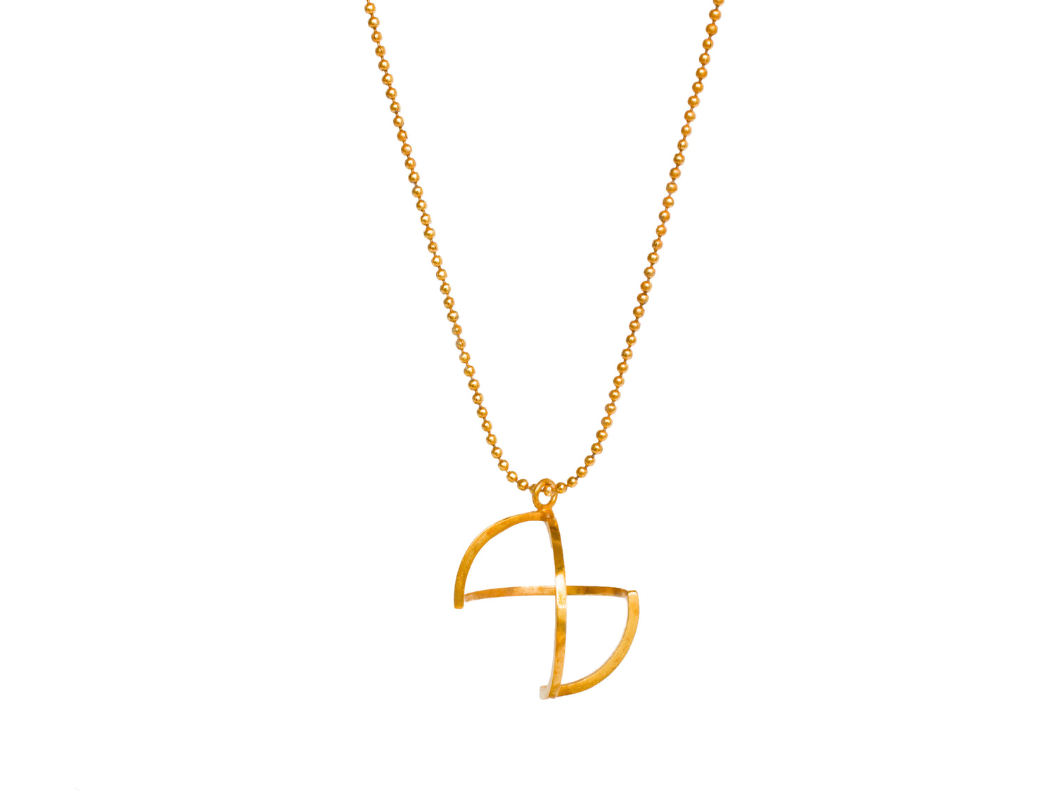 The necklace from collection SPHERE. This is an interpretation of the sphere as the most perfect geometric shape. The sphere is there but not in a classic way. It invites to contemplate the shape to understand what it is meant to be.