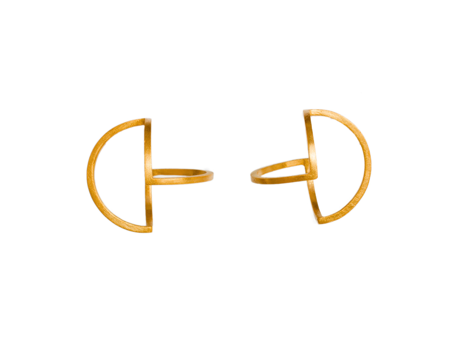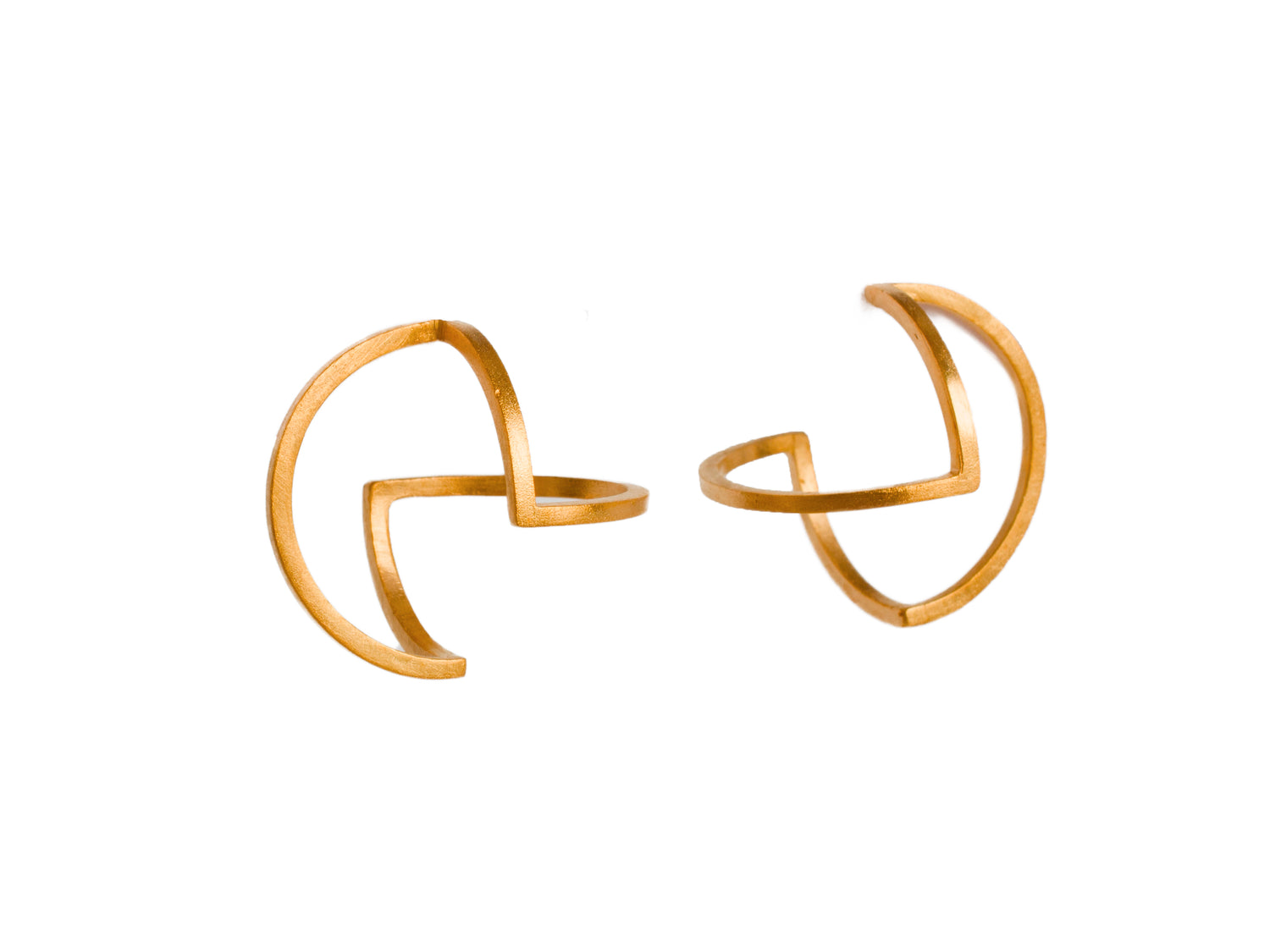 The origin form of these earrings is a sphere that was transformed in a sculptural shape- the shape that changes from every viewpoint.