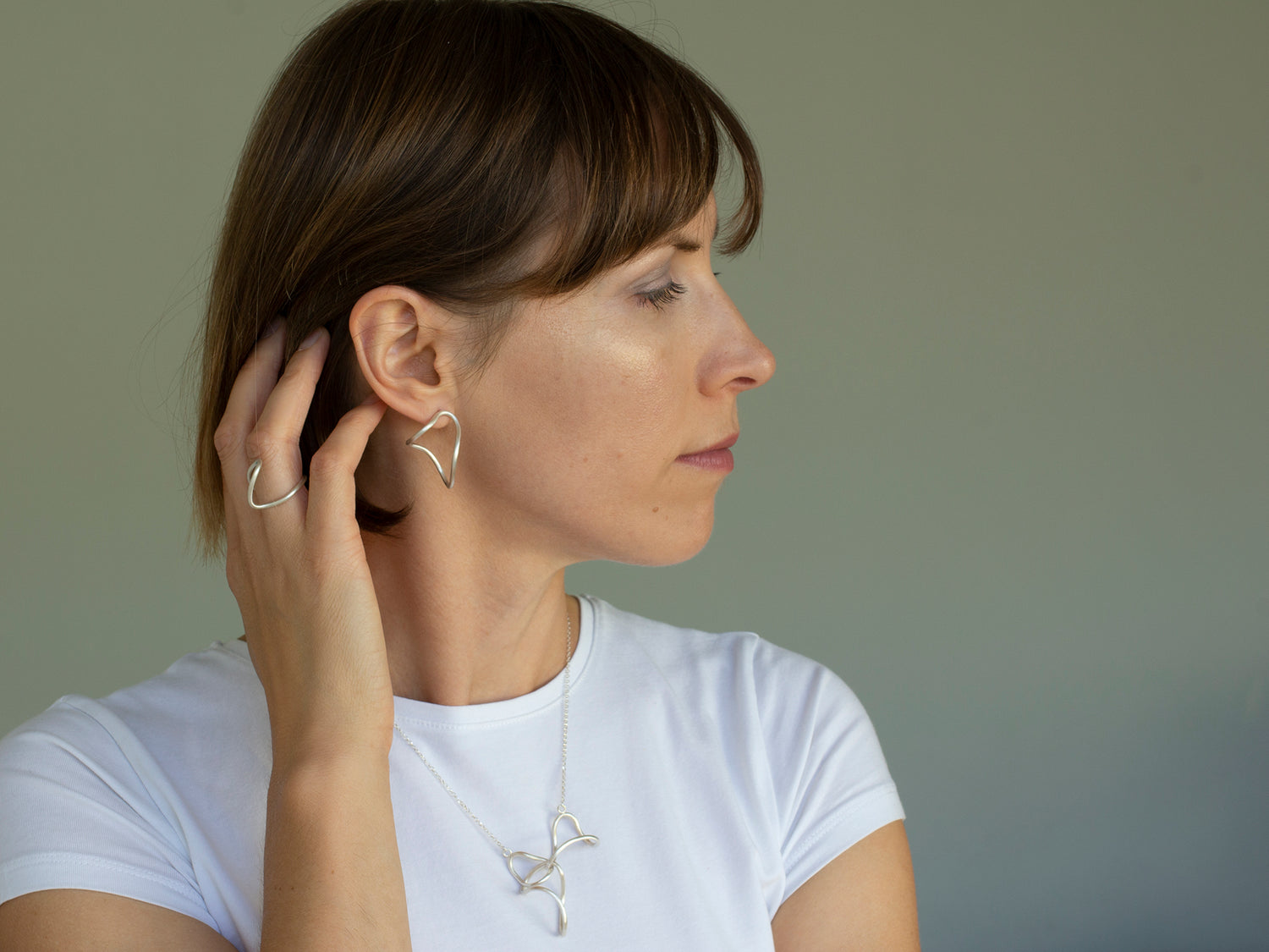 Organic shaped post earrings from collection Nymph symbolises the connection with nature. The sculptural shape of the earrings reveal different form from various angles.